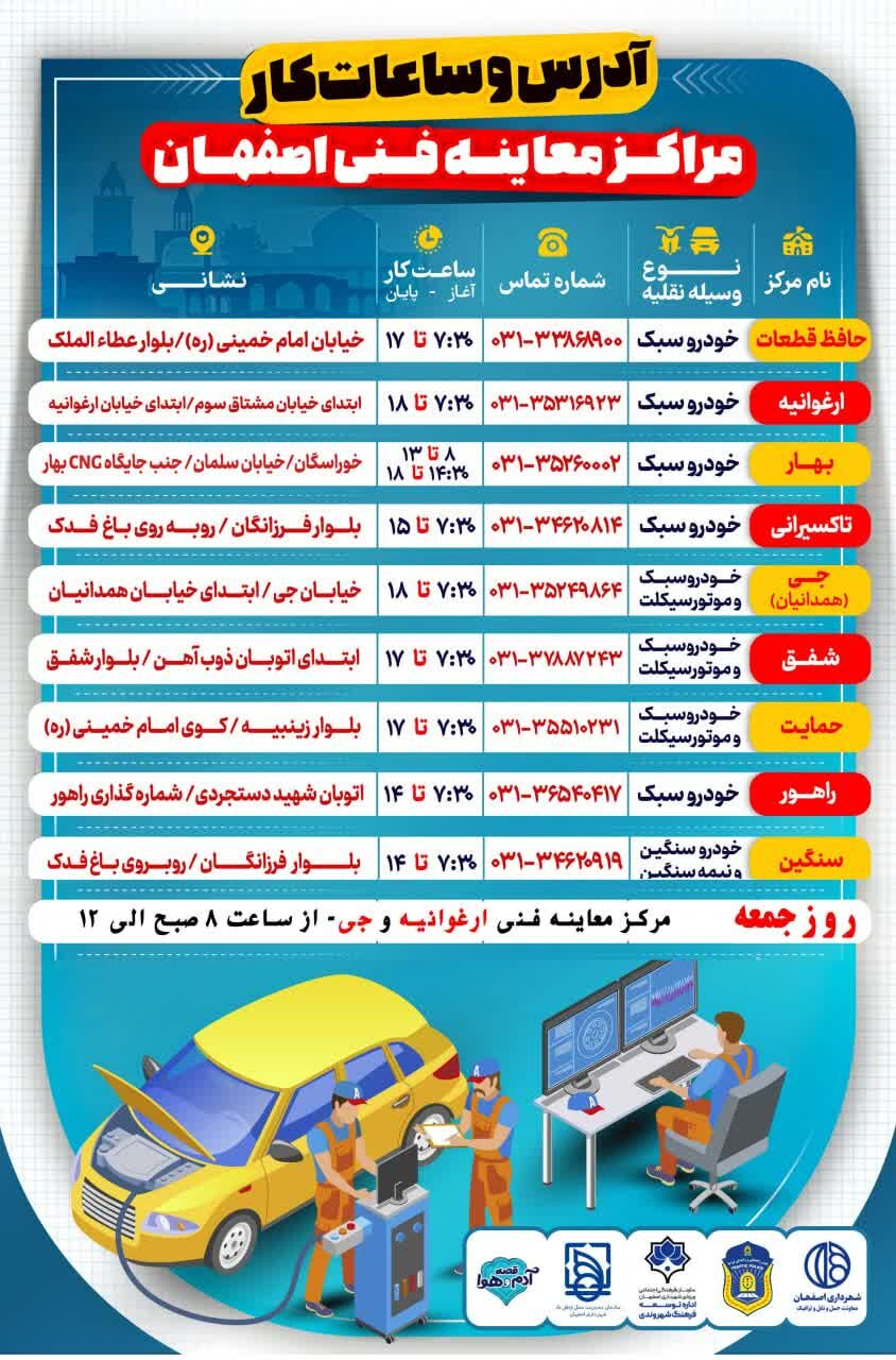 تغییر ساعات فعالیت مراکز معاینه فنی خودرو در شهر اصفهان